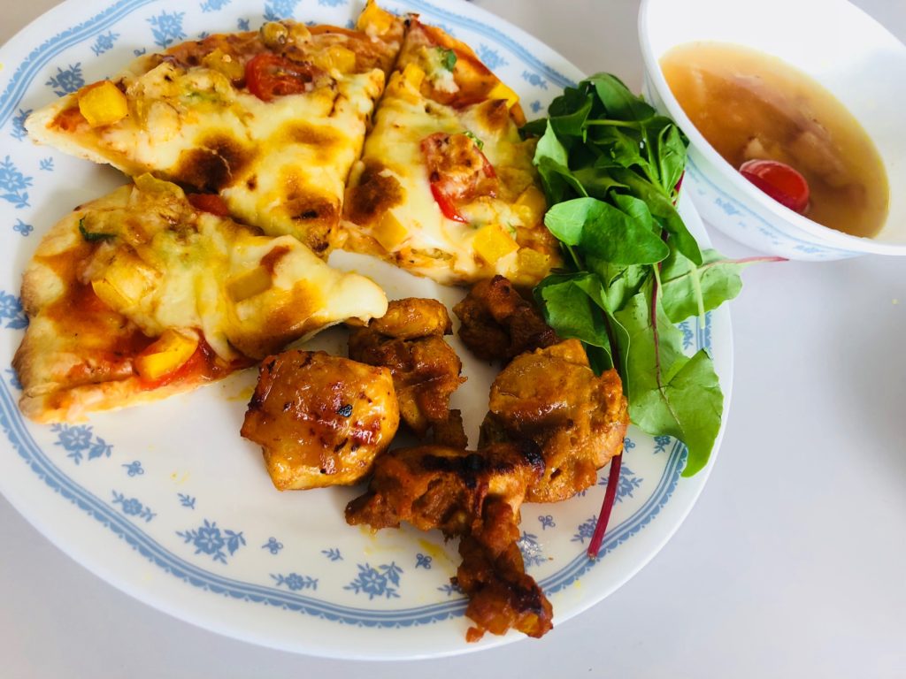 メニュー : 夏野菜ピザ・タンドリーチキン・オニオンスープ