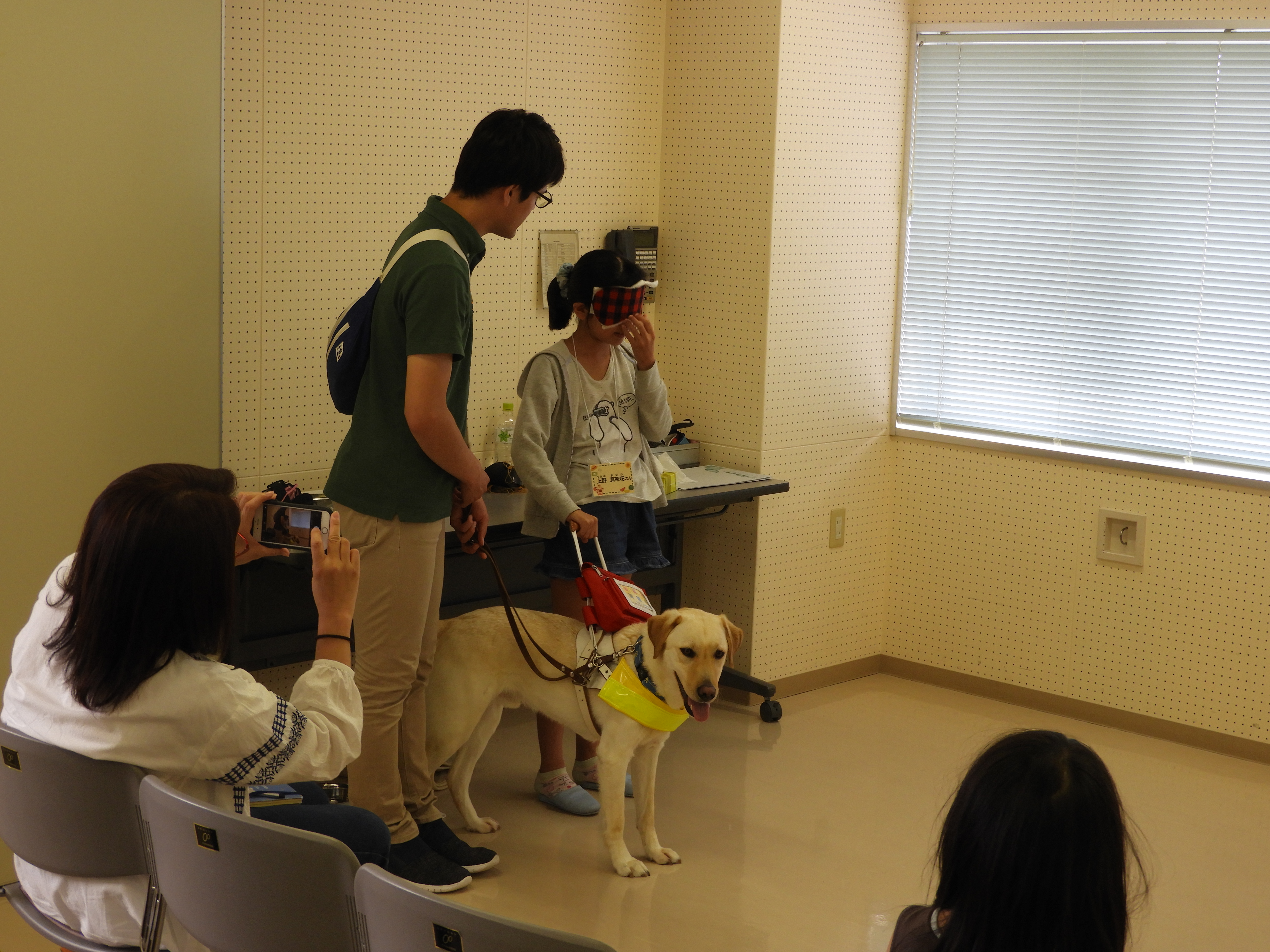 アイマスクをして、グレンくんに椅子まで誘導してもらいました。