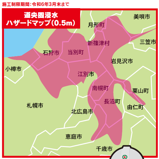 各自治体で公表しているハザードマップにて0.5m以上の浸水が予想される地域