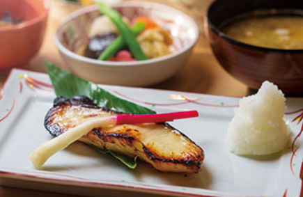 なかでも自慢は「西京粕漬」、西京味噌と半年寝かせた「踏み込み酒粕」をブレンドして魚を漬け込み、遠赤外線効果のある焼き台でふっくら焼き上げます。よそでは食べられない極上の味わいです。