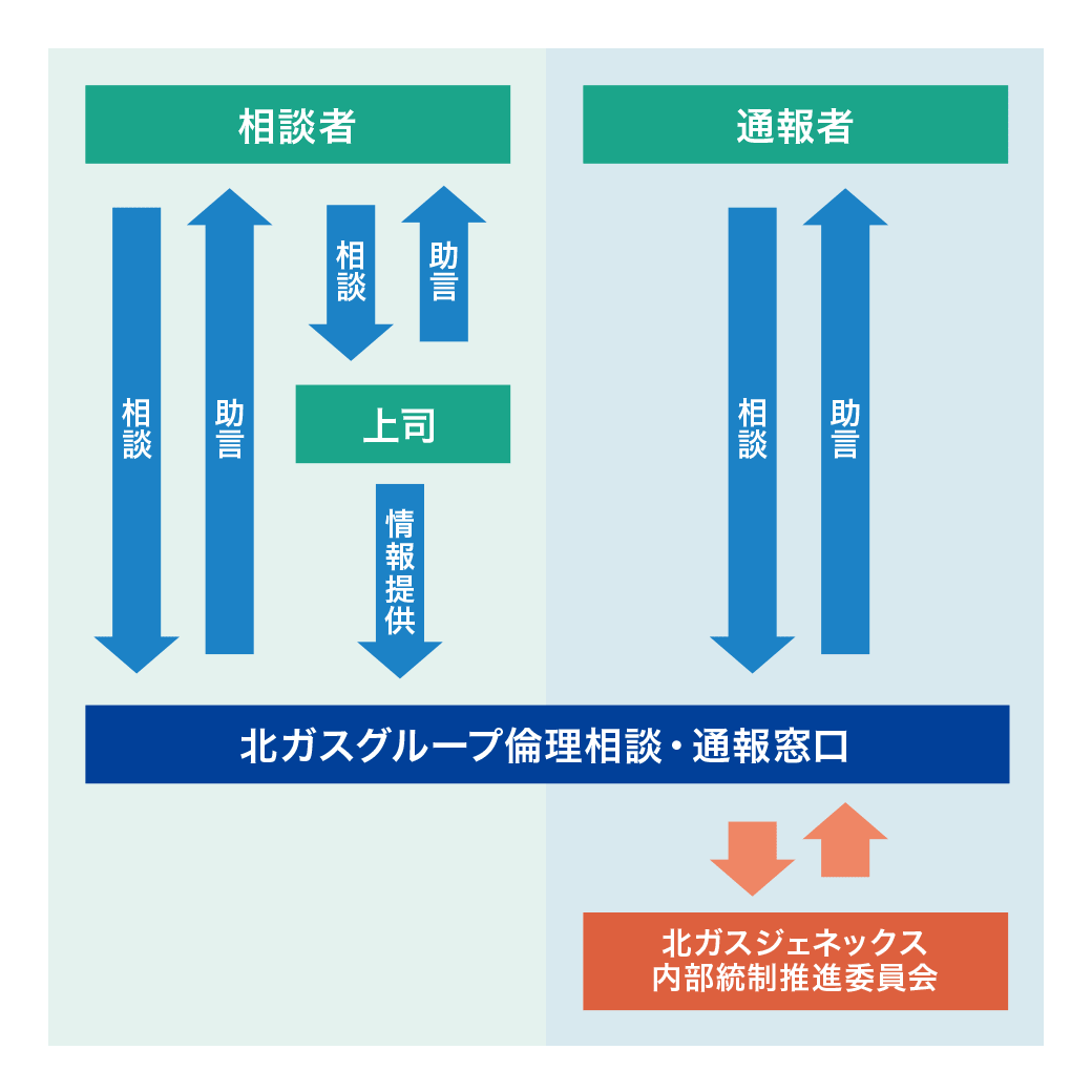コンプライアンスに関わる相談・通報を受け付ける制度として「倫理相談・通報窓口制度」を運用しています。この制度により、相談・通報に対して必要な調査を行うとともに、問題があれば改善を進めていきます。