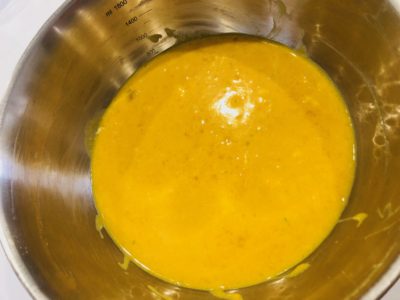 かぼちゃを潰して、バター、牛乳、卵を加え混ぜる。