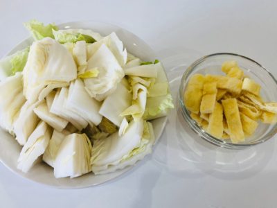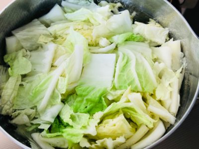 白菜を3cm幅に切る。