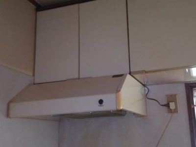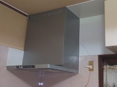 今回のお客さま宅は平型レンジフードからのお取替でした。こちらのタイプからのお取替もお任せください!