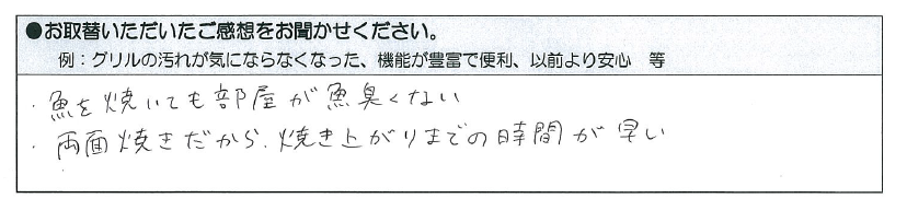 IHコンロの調子が悪くなり、取替を検討していました。コンロ以外の給湯や暖房はガスのボイラーを使用していましたが、引っ越ししてきた時からコンロはIHだったのでガスコンロに取替えることはできないと思っていました。しかし、「脱衣所までガス管はあるから、ガス管の延長工事をすればガスコンロへのお取替えもできますよ。」と言われ、これを機にガスコンロへのお取替えを決めました。