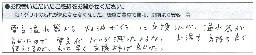 リースが気に入って灯油給湯エコフィールに取り換え!
