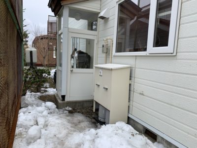 北ガスグループ会社に勤務する娘の勧めで、ガス・灯油・電気を乗り換えました。 工事の際に、 ガスコンロの真裏の位置にボンベやメーターなどのガス設備をまと めてもらったことで、 壁に沿って露出していたガス配管も撤去され、 外観がすっきりしました。